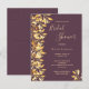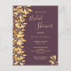 A trendy botanical Bridal Shower invitation in cassis, deep purple. Decorated with faux gold coloured foliage and sprigs. Modern large hand lettered script, typography with the text: Bridal Shower. Templates for the bride to be's name and party details. Golden text.