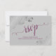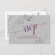 Cassis on Grey Silver Lace Calligraphy Wedding RSVP Card
