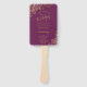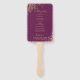 These beautiful hand held fans are designed to serve as both cooling for your guests, and a wedding program. The elegant design features gold script calligraphy on a magenta, cassis purple, or berry coloured background with ornate golden faux foil lace frills in the corners. There is space to list the ceremony order as well as the wedding party and a short thank you note. Wonderful memento of your special day.