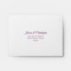 These RSVP envelopes are simple yet elegant. Designed as an A2 sized envelope to be used with 4.25" x 5.5" sized cards, they feature a classic white background with a pre-printed address on the front in elegant script lettering. The inside flap is a cassis purple, magenta, or berry colour with faux foil silver grey lace frills. wonderful and classy way to make it easy for your guests to send in their response cards.