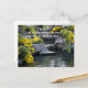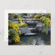1 Pet 5:7: Cast all your anxiety on him because he cares for you. on a postcard with flower around a small lake