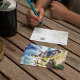 This postcard features a watercolor portrait of Castillo San Felipe del Morro in Puerto Rico.