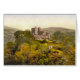 Notecard with a vintage photo lithograph of Castle Campbell in Scotland from 1895 pictures the ruins of a castle on a mountain surrounded by trees with a stone archway further down the hill. Digitally cleaned, enhanced and artistically rendered to resemble pen and ink with watercolors. Located above the town of Dollar in Clackmannanshire, Scotland the mediaeval castle was the lowland seat of the earls and dukes of Argyll, and the chiefs of Clan Campbell from the 15th to the 19th century. Available in two sizes; white envelope included.