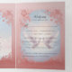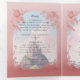 Step into a dreamy world of love and enchantment with thistri-fold wedding invitation. The front cover, reminiscent of a cherished book, opens to reveal the details of your romantic princess castle wedding. The fairy tale castle, embraced by dreamy clouds and two lovebirds sharing a kiss, is framed with a delicate pink floral border. Perfect for those who believe in the magic of love and yearn for a storybook beginning.