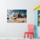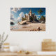 Poster of a Spanish-like castle made of sand in the magical beaches of a Caribbean island from imagination tinged reality. Who's to say what's real and what's not? And whether castles of sand can be the size of real ones? Or palm trees, and shells, and star fish on the beach be not, in fact, the components of dreams that are, maybe, about to become reality? The possibilities are truly endless when real life can be tempered both with imagination and sense, so that the real benefits of both can yield the best results for you. This image was made using the Stable Diffusion WebUI (Auto1111), and then altered by me with image editors.