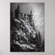 A unique stone castle in the winter snow in the dark winter night high in the mountain. This is a AI generated art.