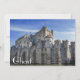The Castle of the Counts in Ghent, Belgium. Painting of Medieval castle Gravensteen surrounded by water.