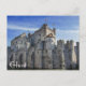 The Castle of the Counts in Ghent, Belgium. Painting of Medieval castle Gravensteen surrounded by water.