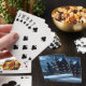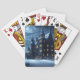 Playing Cards of a dark gothic castle nestled between ancient trees and the mountain ranges behind. Above, the silver Moon shines through the clouds and snowflakes casting her glow over a peaceful wintry scene, an outside peace which belies the torment of the lord of the castle. Night after night he spends the days among his tomes remembering what was and what could have been. From the four corners of the land he has received the visit of a proud crow, a wise owl, a fearless dove, and the beautiful swan, but he needed nothing they could give for in his hollow heart only resided the hope of his desire, and the truth of his life was the eternal waiting for the wish to become reality. This artwork of snow and hollow hearts was generated in Leonardo.ai and then altered by me.