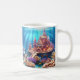 Coffee mug of an underwater castle made of colourful corals. The residence of an ancient race of water elves and mermaids, this castle presides over a subaquatic kingdom of marine life and fishes, never before discovered by man. The only visitor they receive from above are the powerful rays of the Sun which refract through the ocean to reach its depths. This image was done with Stable Diffusion, and slightly altered by me.