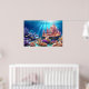 Poster of an underwater castle made of colourful corals. The residence of an ancient race of water elves and mermaids, this castle presides over a subaquatic kingdom of marine life and fishes, never before discovered by man. The only visitor they receive from above are the powerful rays of the Sun which refract through the ocean to reach its depths. This image was done with Stable Diffusion, and slightly altered by me.