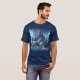 T-shirt of an impressive castle made of igloos and stone, in a winter landscape of snow and pine trees. Magical aurora lights play in the evenfall sky, bathing the mountains and valley in a surreal atmosphere of heavenly colors. Amidst the misty strands of cold and snow, the stronghold castle known as "Winter Fire" stands. It is the last bastion of civilization and warmth before a vast expanse of frozen tundras, snowcapped mountains, and haunted forests open themselves to the wanderlust of the willing traveler... This artwork was created with ImageFX and upscaled with Leonardo.ai. Additional editing was done offline by me.