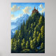 A large castle on a hill deep inside the forest. This is a AI generated art.