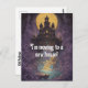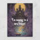 Congratulations on your new castle! A fantasy castle surrounded by swirling mists with a bright yellow moon overhead makes a fun change of address postcard.
