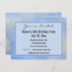 You're invited. The Palo Verde collection is a casual light blue and yellow abstract pattern design, appropriate for birthdays, weddings, anniversaries, baby showers, Easter events, summer parties, or any occasion. Design description: Background on both sides is a photograph of an abstract light blue and yellow design, created by a the limbs and flowers of the Palo Verde, a popular Southern California tree, against a blue sky. The front side is overlaid with a rectangle. The borders of the rectangle are a light blue from the background, the inside fill of the rectangle is also a lighter blue colour taken from the background. On the front, templates for your event, including a "You're invited" header in script font, details for the event's name, date, location, address, town, RSVP contact info, and a line for additional text.