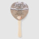 Beach theme wedding program fan, with a photograph of water washing up on a sandy beach and a single seashell. Personalise the text for your wedding day. Matching products are available.