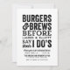 Burgers and brews before the couple says their I do's! This fun brewery-themed rehearsal dinner invitation is a fun way to invite friends and family to celebrate the night before the wedding. Customised to include the couple's names, this pre-wedding invite features bold black text on a white background (please not this is not text but just printed to look like it). This also works well for a casual engagement party, and engagement barbecue or cookout, a bachelor party and more. Customise all the details of the party. Matching party decor also available in the collection exclusively by Lea Delaveris Design. Also available as a digital rehearsal dinner party invitation.