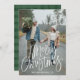 Trendy and modern holiday card featuring your full-bleed vertical photo on the front with "Merry Christmas" in a white, hand-lettered script overlay. Personalise the front of the simple holiday card by adding your name and the year. The holiday card reverses to feature a painted green plaid background with space for additional photos and text.