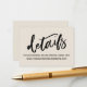 Keep your wedding guests in the loop with all your details with these pretty, modern wedding insert cards. A casual text overlay was designed using a modern handwritten font in black, simply reading "details". Use the template fields to customise these enclosure cards with your personal information. The background is cream and this editable colour can be changed to anything from your wedding palette that you choose; all editable text appears in black. // 100 //