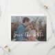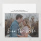A modern and casual save the date announcement with your favourite horizontal/landscape photo overlaid with "save the date" in modern white casual handwritten font. The colour of this is editable. Personalise further by add details of your wedding website with a QR code on the reverse.
