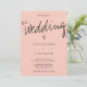 A wedding invitation with a casual, yet modern, typography design. This pink solid colour invitation accents the big event with the word Wedding in a large, handwriting-style, font. The rest of the invitation is in clean, open, typography that gives the design a strong structure. This invitation reflects the relaxed, yet well-organised, nature of your wedding. Ready to check invitations off your list? Simply add your information, add this invite to your cart, and have a great wedding.