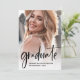 This trendy, elegant grad party invitation features two photos of the graduate. On the front there is casual modern black script along with the grad's name, school, and class year. On the back is a second, faded, photo of the graduate with all of your party information clearly printed over it on an overlay. A stylish and simple graduation invitation that will highlight your grad's favourite personal photos!