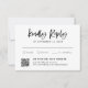 This chic and stylish, black and white wedding response card is the perfect RSVP to send if you have both more traditional guests who prefer to respond by mail, and also those who would rather reply online. This simple budget card will work for everybody. Guests can fill out the top portion and return the card by mail, or scan the QR code or go to your website listed at the bottom instead. Casual modern script creates an informal and totally modern look.