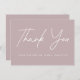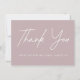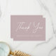 Simple wedding thank you card featuring "Thank You" displayed in a white handwritten script with a dusty purple background. Personalize the front of the modern thank you card by adding your name. Add your custom message to the back.