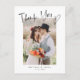 Modern and simple wedding thank you template card featuring a casual script text with a heart at the end. Customise this product by inserting your own wedding photo and editing the message on the back of the card.