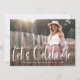 This trendy, elegant grad party invitation features two photos of the graduate. On the front there is casual modern white script that says "let's celebrate," along with the grad's name, school, and class year. On the back is a second, faded, photo of the graduate with all of your party information clearly printed over it on an overlay. A stylish and simple graduation invitation that will highlight your grad's favourite personal photos!