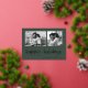 This simple classic green family holiday photo card features modern, casual gold foil script typography that says "happy holidays", with a two photo grid on the front for a stylish, modern and minimalist holiday design.