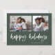 This simple classic green and white family holiday photo card features modern, casual script typography that says "happy holidays", with a two photo grid on the front for a stylish, modern and minimalist holiday design.