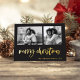 This simple classic charcoal black family holiday photo card features modern, casual gold foil script typography that says "Merry Christmas", with a two photo grid on the front for a stylish, modern and minimalist holiday design.