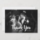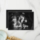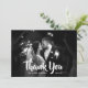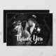 Thank guests in style with a trendy typography wedding photo thank you card. Modern and stylish, this design features the overlay text "Thank You" in casual script lettering and editable text fields for the couple's names and wedding date in elegant sans serif in the front. Card reverse to editable text fields to add a personal message to recipients on a black background. Easily personalise this design to match your style by clicking "Customise" to go to the design tool and adding your own custom photo, text or details.