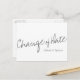 Drop your guests a quick note to let them know you've had to change your wedding date or postpone your party with this black, white, and grey postponement or cancelled wedding postcard featuring a fun, casual hand-lettered script. The classic design includes a modern handlettered quote typography overlay. For other colours or matching products, please visit the JustFharryn Zazzle store, or contact the designer, c/o Fharryn@yahoo.com All rights reserved. #bohochic #zazzlemade