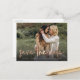 A modern save the date postcard designed to accommodate your favorite horizontal or landscape oriented full-bleed engagement photo. "Save the date" appears as a faux copper foil text overlay in casual handwritten lettering. Personalize with your names, wedding date and wedding location beneath in white lettering.