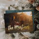 Send holiday greetings with these chic photo cards featuring your family name overlaid in gold foil hand sketched script lettering. Personalise with your custom Christmas or holiday message beneath.