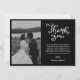 This thank you card met all my expectations. I loved the fact we could add two photos but still have plenty of room to write a personalised message, and the the thank you heart on the front is a lovely touch. Simple, elegant, charming - can't wait to get them into our guests' letterboxes! The print quality is excellent - really love how the colours came out on the textured ecru card.