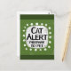 An irreverent and cute typographic animal design that says "Cat Alert, Prepare To Pet". It features black and red text on a white rectangle with funky, playful white dots surrounding it, all on a grey background.