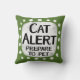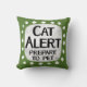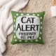 An irreverent and cute typographic animal design that says "Cat Alert, Prepare To Pet". It features black and red text on a white rectangle with funky, playful white dots surrounding it, all on a grey background.