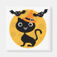 A cat in a black witch hat sits with a bright harvest moon in the background as two bats fly around! Cats and Bats Halloween T-shirts, bodysuits, sweatshirts, mugs, magnets, buttons, trick or treat bags, cards, stickers, and other cute and colourful Halloween design apparel and gifts.