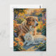 This design features a serene scene of a golden-brown dog and a white cat lounging together in a vibrant garden. The warm sunlight filters through the foliage, casting dappled shadows on the stone path. Surrounding them are lush flowers in hues of orange, yellow, and purple, creating an atmosphere of peaceful coexistence.
