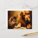 Cat and dog reading a book postcard