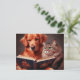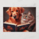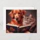 Cat and dog reading a book postcard