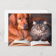 Cat and dog reading a book postcard