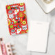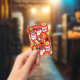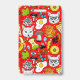 Cat and egg on red ID badge