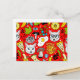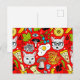 Cat and egg on red postcard