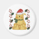 Buy this great Christmas gift featuring a cute yellow cat, wearing a Santa Claus hat and surrounded by green holly with tiny red berries.