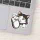 Add a touch of feline charm to your tech with our adorable sticker featuring a curious black cat delicately placing its paw on a computer mouse. This playful design is perfect for cat lovers and tech enthusiasts alike.