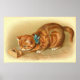 Vintage image of a ginger or marmalade cat inspecting a mouse in a mousetrap.